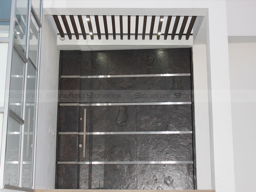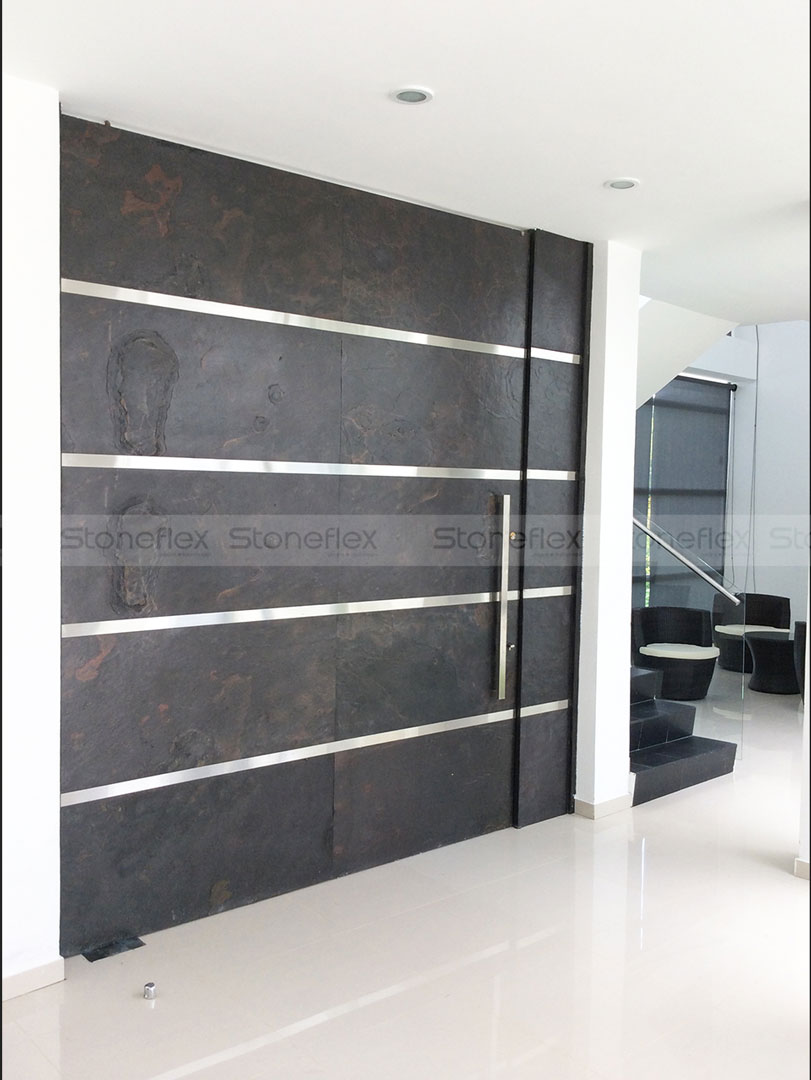 La dimensión de la lámina es de 1.22 m de ancho y 0.61 m de alto. Estás láminas son más rígidas que su versión de piedra natural por l o que son ideales en lugares de alto tráfico.
